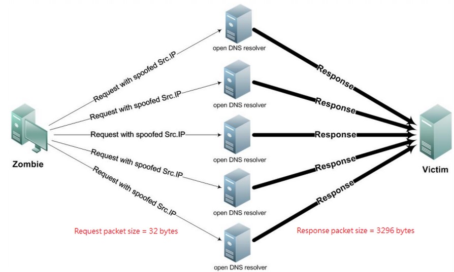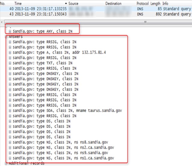 檢視IPS所偵測到的事件封包,可發現具有明確的攻擊特徵,攻擊者偽造來源後, 並針對特定domain發送大量query封包,藉此癱瘓受害主機頻寬。