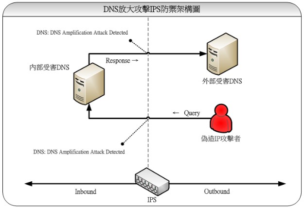 台北區網透過IPS即時監測各區網有無DNS放大攻擊事件,偵測基本架構可參考上圖