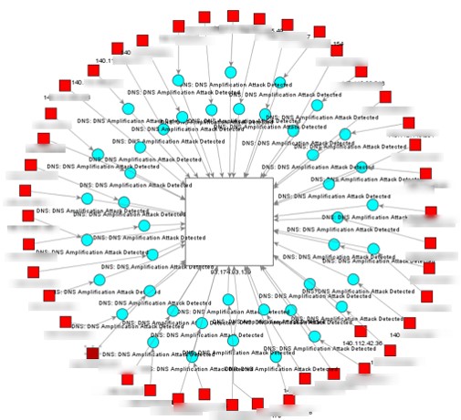 在北區ASOC 協助下,經由Arcsightg收容前端IPS資料後,進行後續的關聯分析, 便可得知攻擊拓撲圖,來了解此種攻擊行為的模式及關連性。